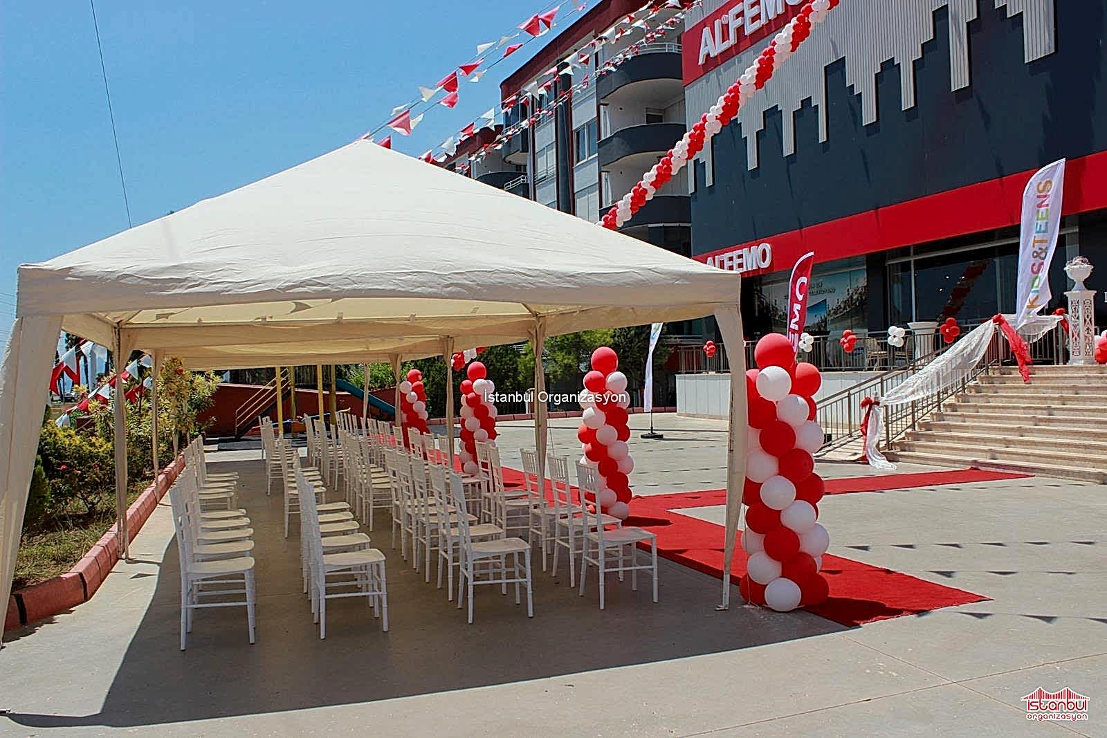 Süsleme hizmetleri açılış organizasyonuna dikkat çekmenin en önemli detaylarından biri. Şişme kapı tak, kapı tak, zincir balon süsleme ve papatya balon süslemelerle mağazanıza, dükkanınıza, okulunuza, kurumunuza ilgi çekebilirsiniz.