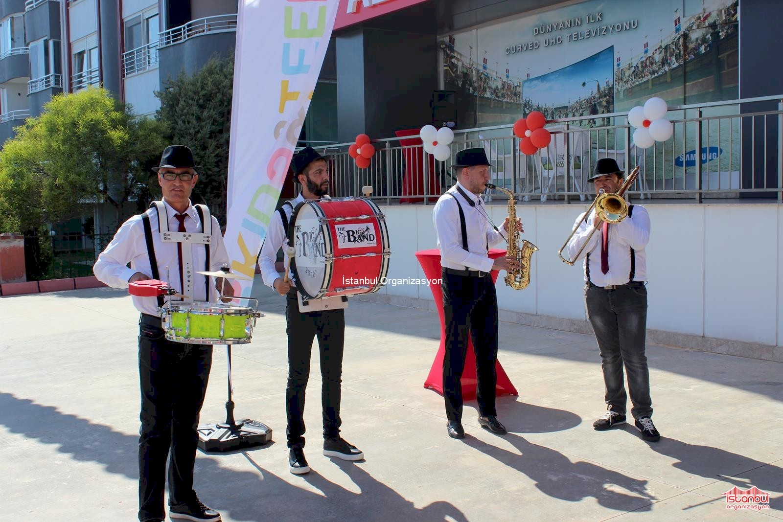 Okul, fabrika, AVM ve kurumsal firma gibi daha büyük çaplı açılışlarda ise; balon süsleme, sunucu, ses sistemi, animatör hizmetlerimin yanında daha ilgi çekici ve farklı aktivitelerin kullanılması işletmenin yararına olacaktır. Müzik ve sahne hizmetleri gibi. Örneğin; bir trio grubunun müzik dinletisi ya da bando grubunun enstrüman ve ritm şovu. Ya da ilgi çekici bir dans grubunun tüm kitleye hitap eden dansı, modern ya da yöresel danslar.