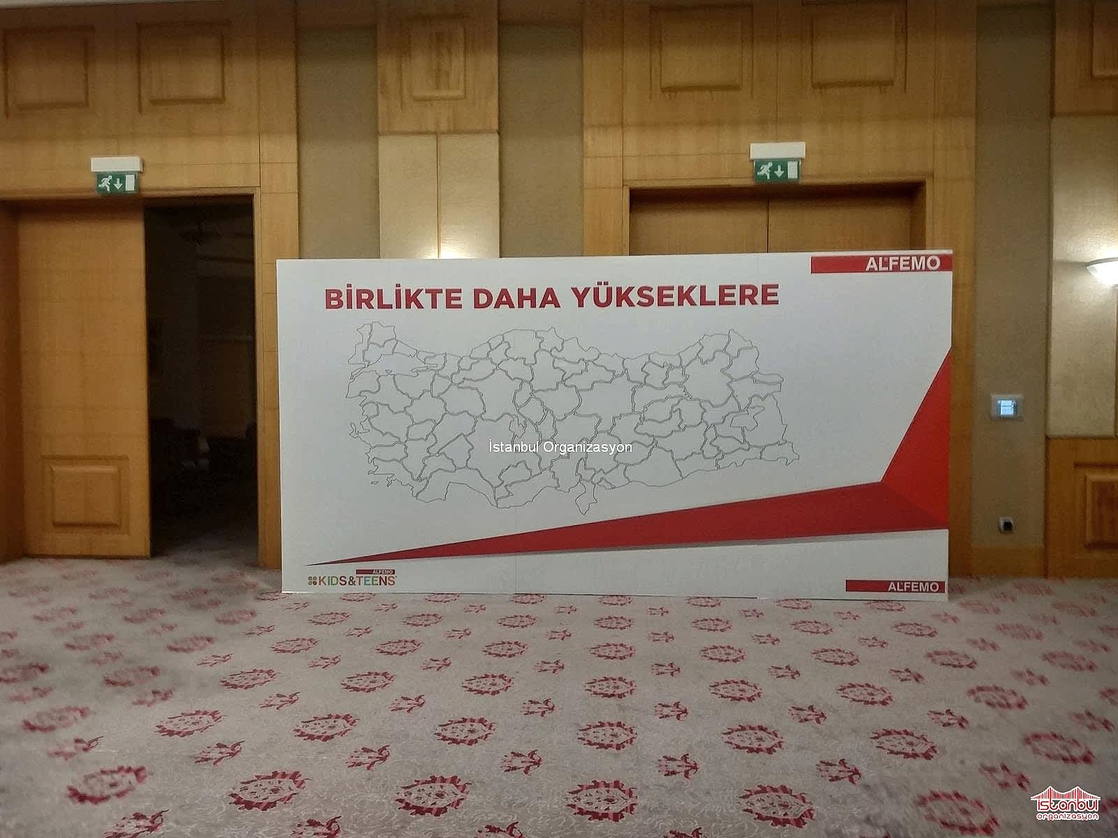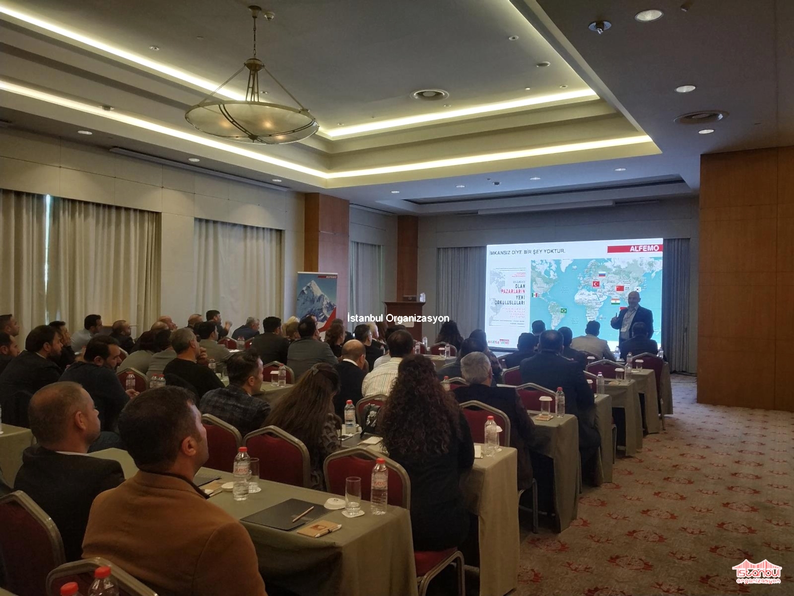 Ertesi gün Wyndham Grand Otel de gerçekleşecek organizasyon için ekibimiz yine sabahın erken saatlerinde yola çıktı. Otele ulaştığımızda organizasyonun gerçekleşeceği alanda hazırlıklarımıza başladık. Davetlilere salonda rahat hitap edebilmek ve görsel sunum gerçekleştirebilmek adına ses sistemi ve led ekran kurulumlarımızı gerçekleştirdik. Alfemo Mobilya bayi toplantısı organizasyonu için temin ettiğimiz ekipmanlarla katılımcılara özel bir alan hazırladık.