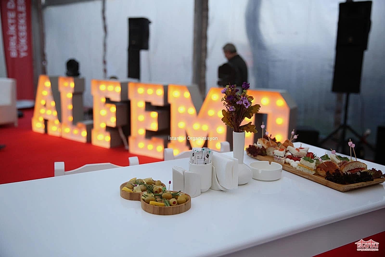 Teknik ekibimiz organizasyon alanındaki son hazırlıklarını kontrol ederken davetliler gelmeden öncede garsonlarımız ikramlıklarımızı masaların üzerine yerleştirdi. Teknik ekibimiz de son olarak flama bayrakları iç ve dış mekanda yerleştirdi. İstanbul Organizasyon firmamızın temin ettiği profesyonel dj organizasyonun başlamasına kısa bir süre kala müzik yayınına başlamıştı. Hazırlıklarımızı bitirdikten kısa bir süre sonra katılımcılar da organizasyon alanını doldurmaya başladı.