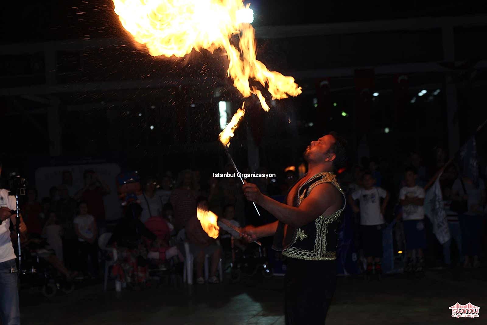 Ateş yutan adam ve ateşbaz gösterisi yetişkinlerin de tıpkı çocuklar gibi ilgiyle ve heyecanla izlediği bir animasyon gösterisidir. Doğum günleri, festival, şenlik, düğün, nişan vb. organizasyonlarında profesyonel eğitilmiş animatörlerimiz sizlere eşsiz bir gösteri sunacaklar. Ateşbaz gösterisinde animatörlere her türlü eğitimin profesyonelce verildiğini ve güvenlik önlemlerinin bizler için esas olduğunu İstanbul Organizasyon olarak size hatırlatmak isteriz. Ateş yutan adam ve ateşbaz nefes kesen gösterisiyle sizleri heyecanlandırmaya hazır. Yalnızca İstanbul’da değil, İstanbul ve yakın çevresinde, Marmara Bölgesi’nde ve hatta tüm Türkiye’de gerçekleştireceğiniz organizasyonlarınız için, firmamızdan ateşbaz gösterisi hizmeti alabilirsiniz.