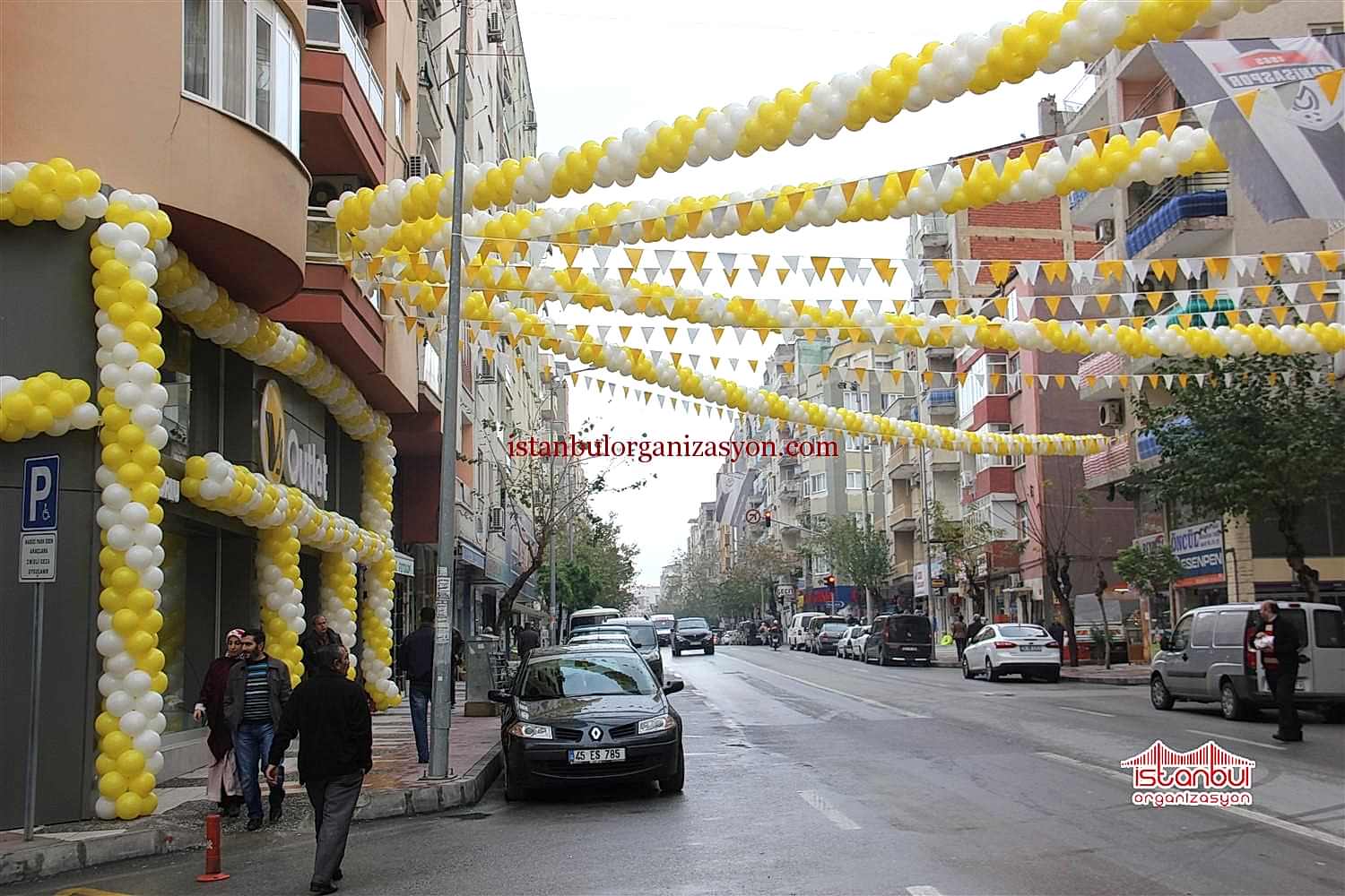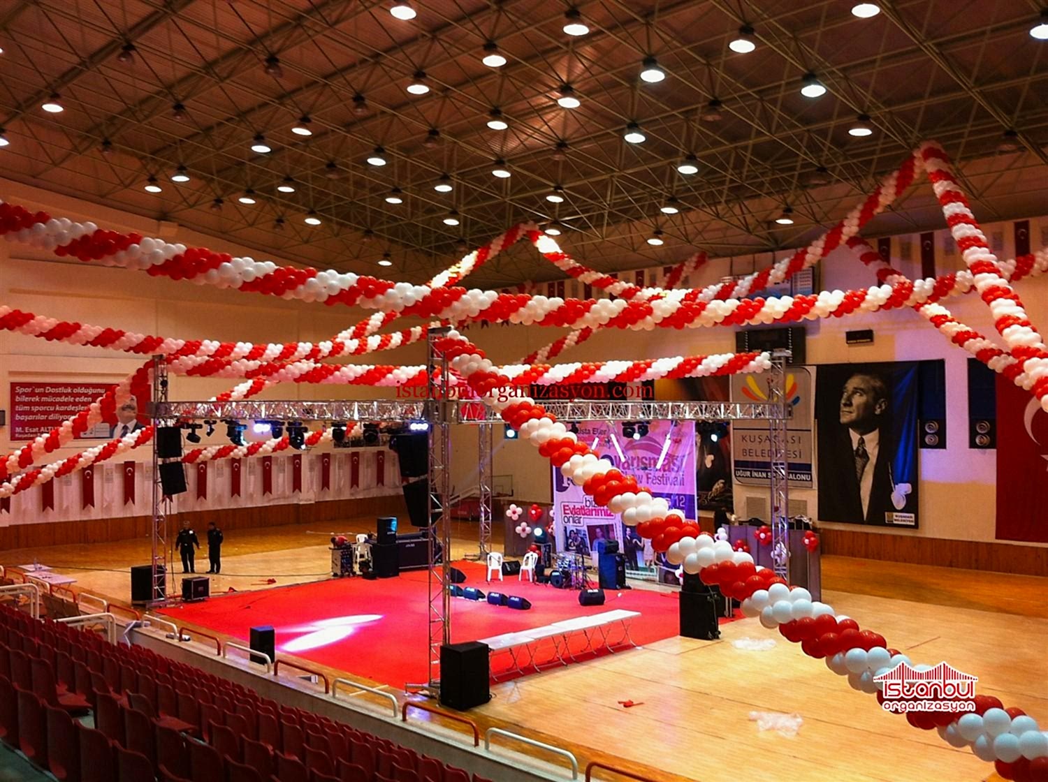Balon süsleme hizmeti, İstanbul Organizasyon‘un tecrübeli ekibi ile profesyonel bir şekilde sizler için veriliyor. Etkinlik ve organizasyonlarınızın daha dikkat çekici olması için çeşitli balon süsleme teknikleri kullanıyoruz. Açılış organizasyonu, temel atma töreni organizasyonu, doğum günü organizasyonu, şenlik organizasyonu ve festival organizasyonu gibi her türlü etkinlik ve organizasyonlarınızda firmamızdan balon ve bayrak süsleme hizmetleri alabilirsiniz. Zincir balon, sütun balon, kapı takı, papatya balon, uçan balon, zeplin balon, jumbo balon, file balon ve balondan figürler ile etkinliklerinizi renklendiriyoruz. Yalnızca İstanbul’da değil, İstanbul ve yakın çevresinde, Marmara Bölgesi’nde ve hatta tüm Türkiye’de gerçekleştireceğiniz organizasyon ve etkinlikleriniz için profesyonel balon ve bayrak süsleme hizmetleri veriyoruz.
