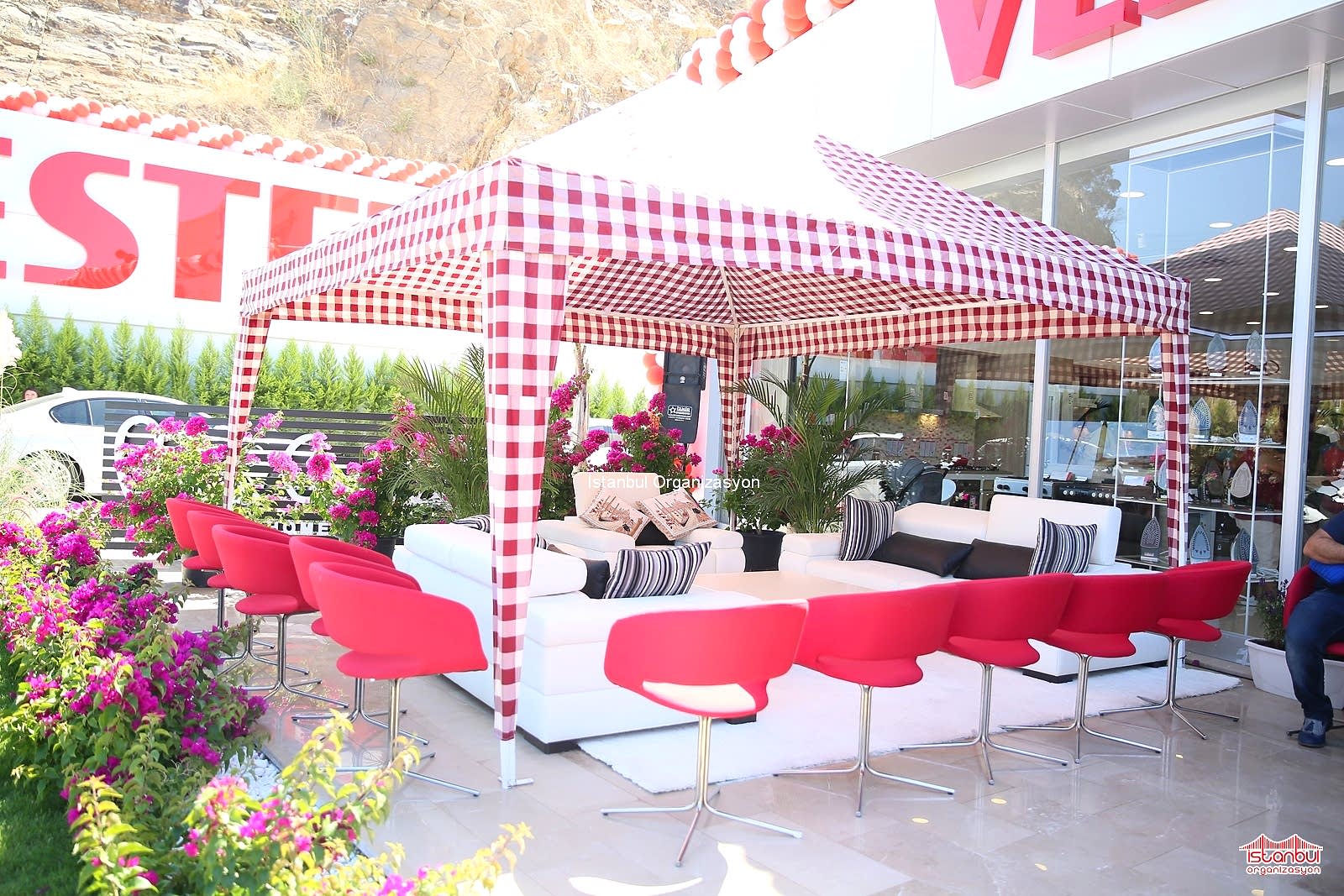 Açılış organizasyonu, temel atma töreni organizasyonu gibi protokol katılımlı organizasyonlarda, protokol davetlilerinizi kusursuz bir şekilde ağırlamak isteyebilirsiniz. Çadır ve gölgeliklerle yağmur, rüzgar ve güneş gibi hava koşullarından en az etkilenebilir, davetlileriniz için konforlu bir alan hazırlayabilirsiniz.