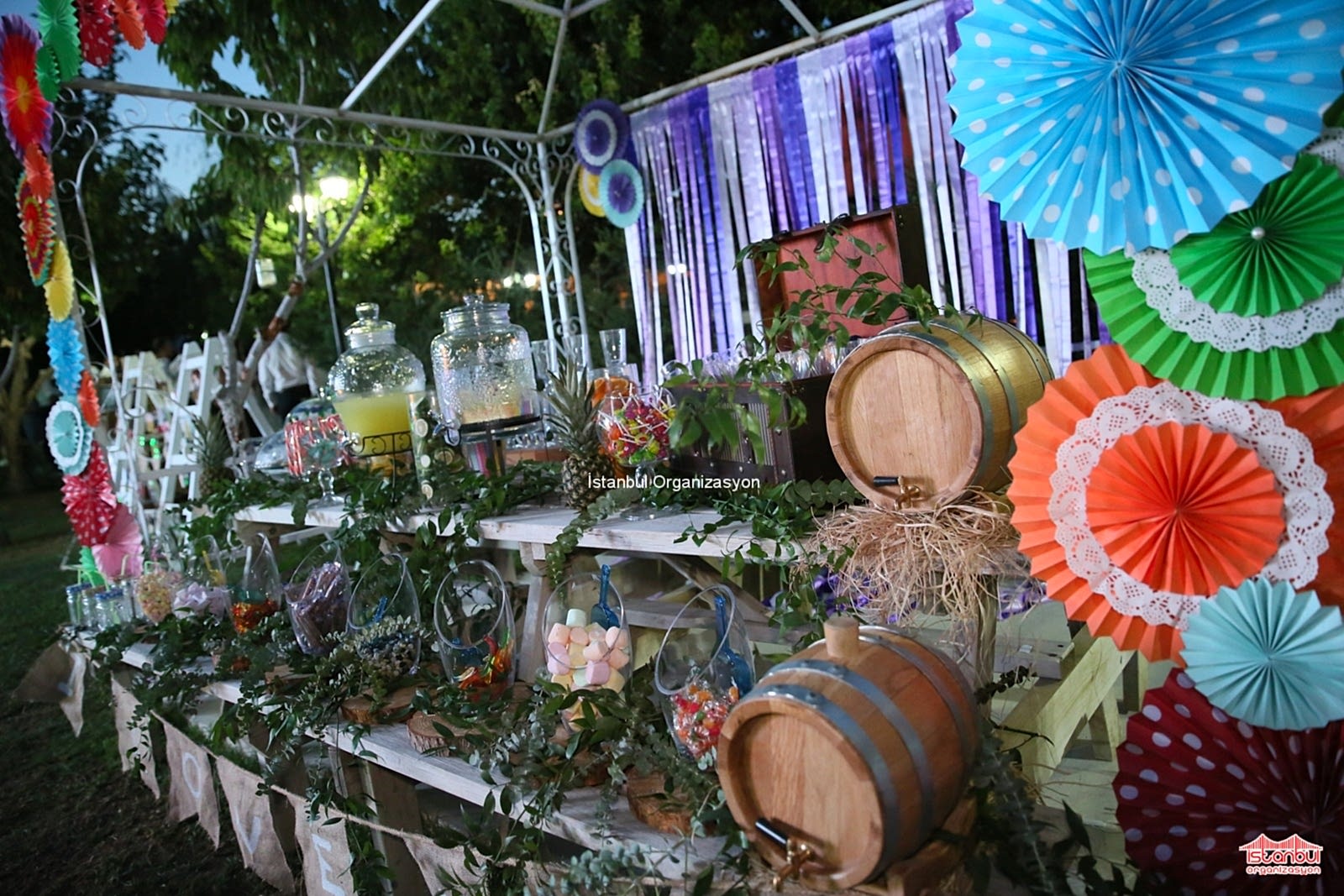 Sıra dışı ve farklı düğün konseptlerimizle, düğün trendlerini belirleyen organizasyon firmalarından biriyiz. Yaratıcı ve geniş bir vizyona sahip olan profesyonel bir ekiple birlikte çalışıyoruz. Kumsal düğünleri, özgürlüğüne düşkün, mistik ruhlu, doğasever gelin adaylarımız için çok tercih ediliyor. Beyaz tüllerle çevrili gazebo, saman rafya süslemeler, deniz fenerleri, kandil lambaları, deniz kabukları, istiridye dekorları gibi doğayla iç içe dekorlar görebileceğiniz bir düğün konsepti.