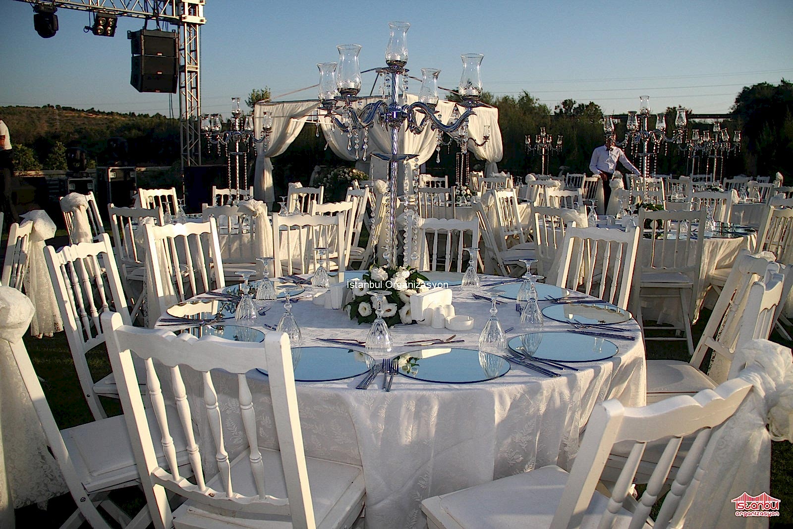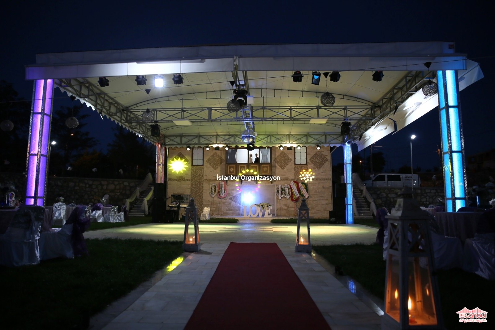 Sahne, ışık, profesyonel ses sistemi kiralama hizmetlerimizle de düğün organizasyonunuzu tamamlıyoruz. Mekanın büyüklüğü ya da uygunluk durumu, davetli sayısı, kullanılacak olan etkinlikler ve aktivitelere göre sahne büyüklüğünü belirliyoruz. Sahneye bağlı olarak da sahne için kullanılacak olan ışıklar ve profesyonel ses sistemi kurulumu yapıyoruz. Sahne, ışık ve ses hizmetlerimiz teknik ekipman kiralama hizmetlerimiz olup, teknik ekibimizden en az bir kişi teslimini ve kurulumunu yapmak üzere, organizasyon adresine gelir ve organizasyon süresince orada kalır.