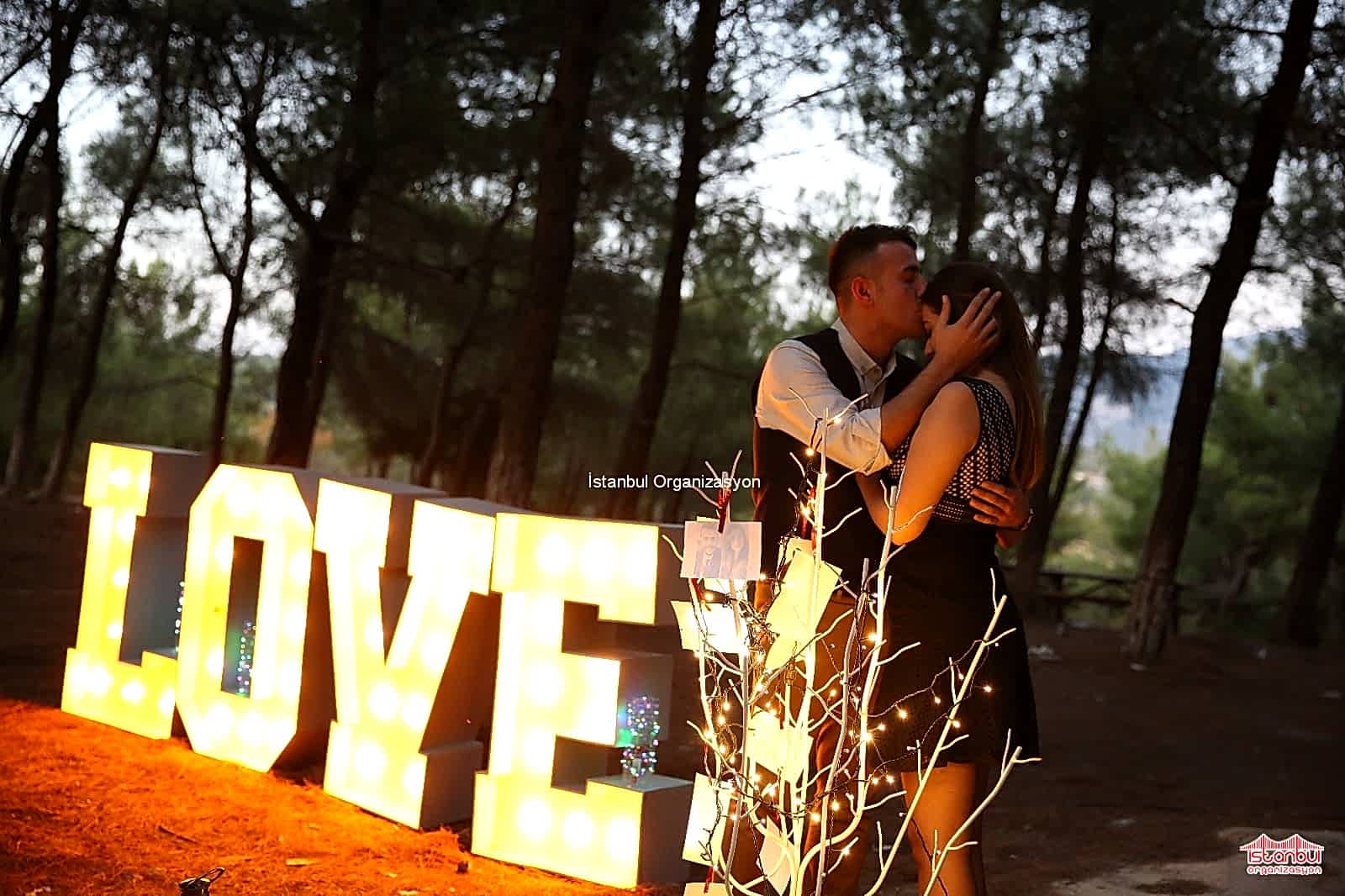 - Dev Love Işıklandırma: Romantik mi, ilginç mi, yoksa şık bir şey mi? Bizde adını koyamadık. 110 cm yüksekliğinde aşkınızı ingilizce kelime ile yansıtacak, özel renkleriyle gün ışığını evlilik teklifi organizasyonunuza yansıtacak, tarz katacak en farklı, en sıra dışı ışıklandırma panosudur.