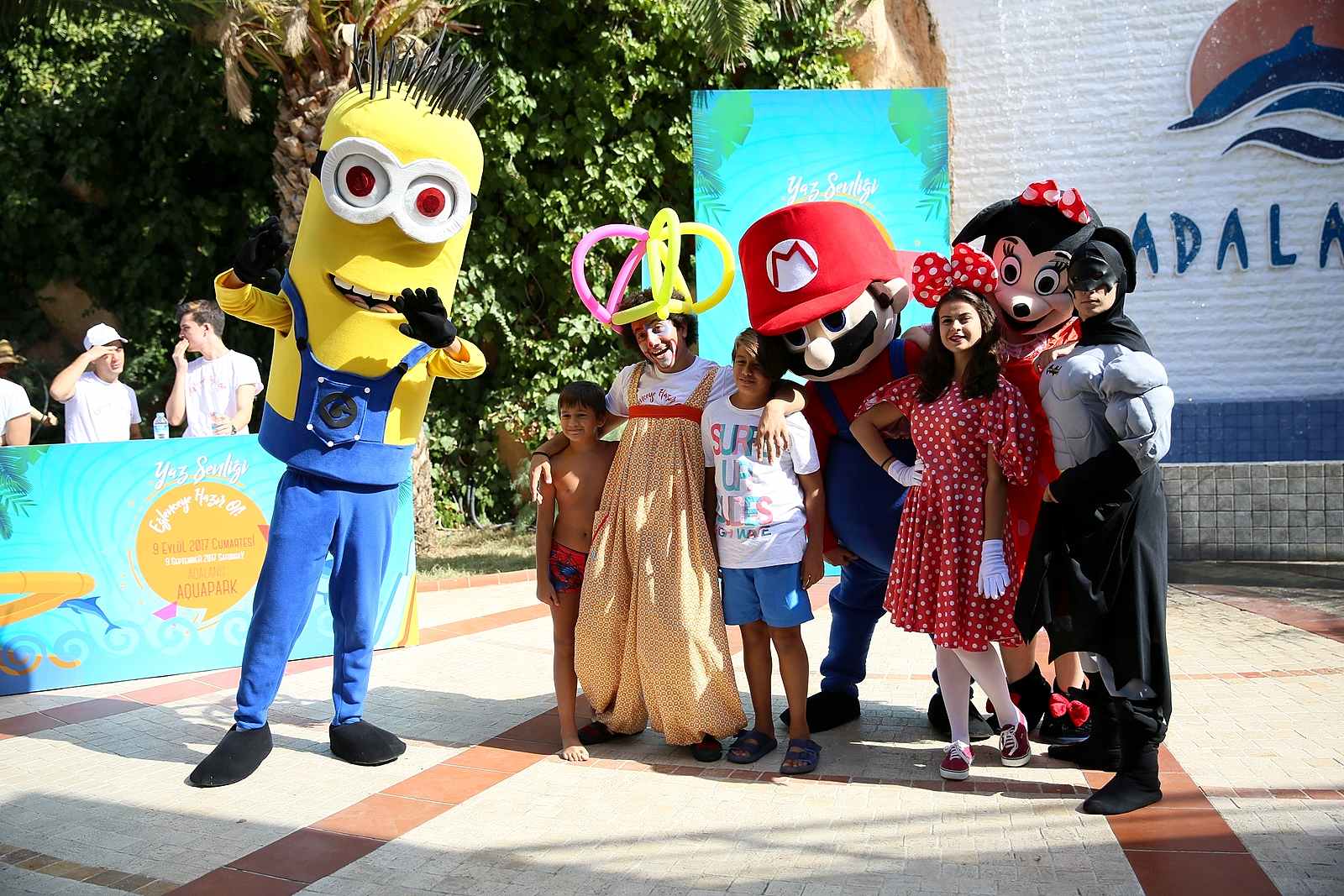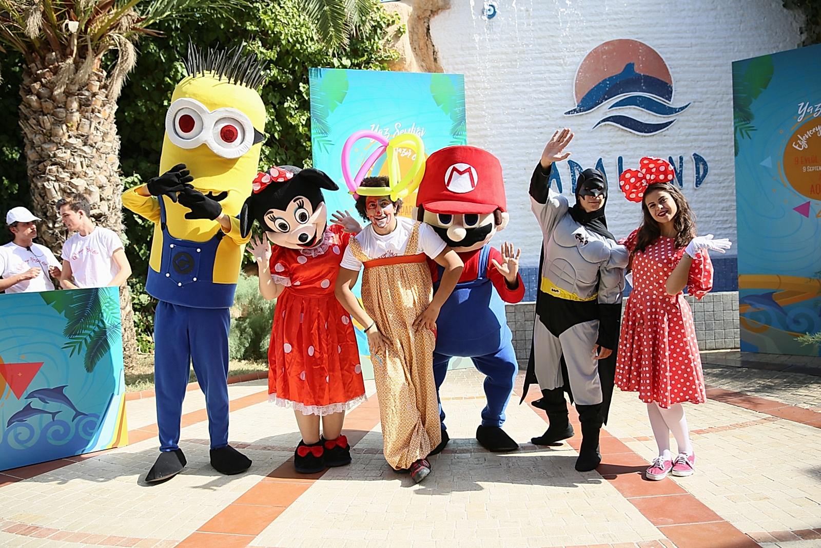 Kostümlü karakterler, profesyonel animasyon ekibi tarafından canlandırılır.