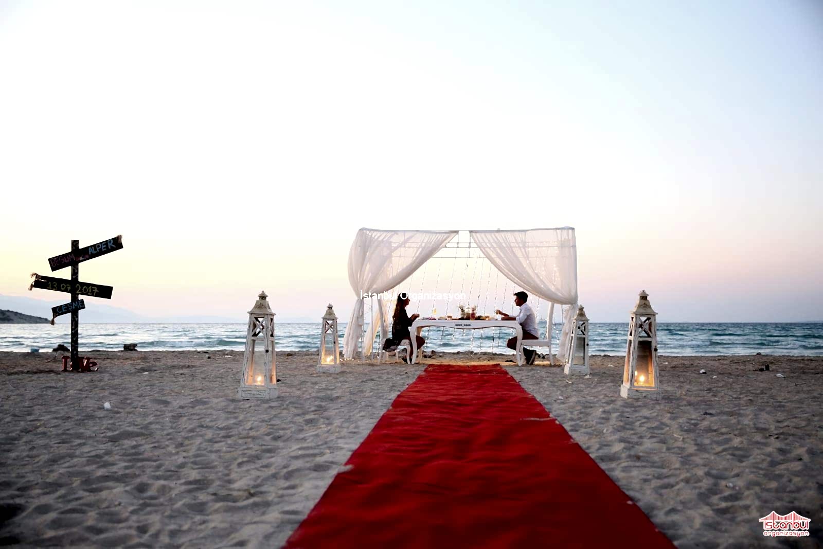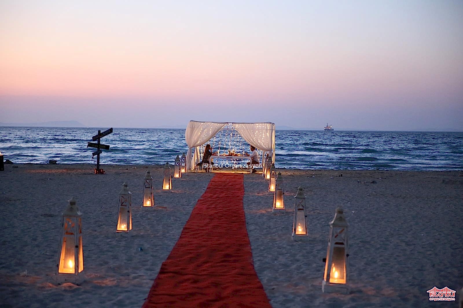 Kumsalda evlilik teklifi organizasyonu ile İstanbul Organizasyon firmamız sıra dışı ve unutulmayacak organizasyonlara imza atıyor. Evlilik yolunda ilk adımı atmaksa çoğu zaman erkeklere düşer. Sevdiğiniz kadının nelerden hoşlandığını ve nasıl bir evlilik teklifi hayali kurduğunu biliyorsanız sizlere bu doğrultuda hizmet sunuyoruz. Nasıl bir organizasyon yapacağınız konusunda karar veremiyorsanız çoğu kadınlardan oluşan ekibimizle sizlere birbirinden farklı seçenekler sunuyoruz. Alper Bey de seviyeli ilişkilerini bir sonraki adıma taşımak üzere evlilik teklifi etmeye karar vererek İstanbul Organizasyon firmamıza ulaşmış. İnternet sitemiz ve Youtube kanalımız üzerinden İstanbul Organizasyon firmamızı inceleyen Alper Bey ile detaylı olarak görüşmelerimize devam ettik. Begüm Hanıma nasıl bir evlilik teklifi gerçekleştireceği konusunda kararsız kalan Alper Beye kumsalda evlilik teklifi organizasyonu, teknede evlilik teklifi organizasyonu, dev pankartla evlilik teklifi organizasyonu gibi birbirinden farklı evlilik teklifi organizasyonu paketlerimizden bahsettik.