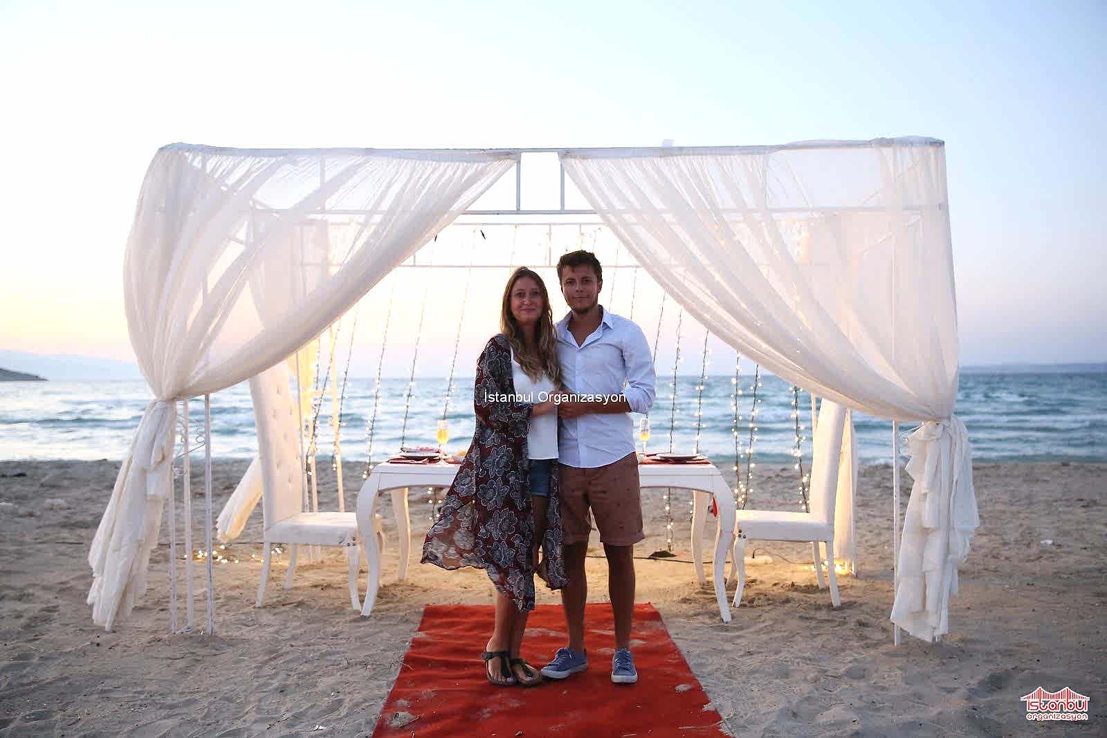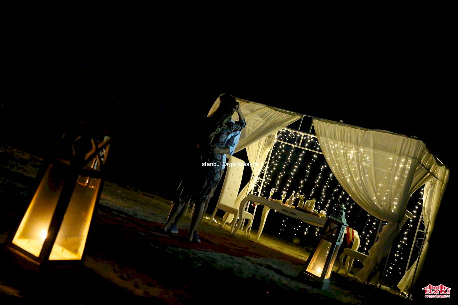 Begüm Hanımın denizi sevmesini ve yaz aylarında olmamızı da fırsata çevirerek Alper Bey ile görüşmelerimiz sonucunda kumsalda evlilik teklifi organizasyonuna karar verdik. Detayları belirledikten sonra tarihi kararlaştırdık. Alper Bey için heyecan dolu dakikalar başlamıştı. İstanbul Organizasyon firmamızda kusursuz bir organizasyon gerçekleştirmek için hazırlıklarını sürdürüyordu.