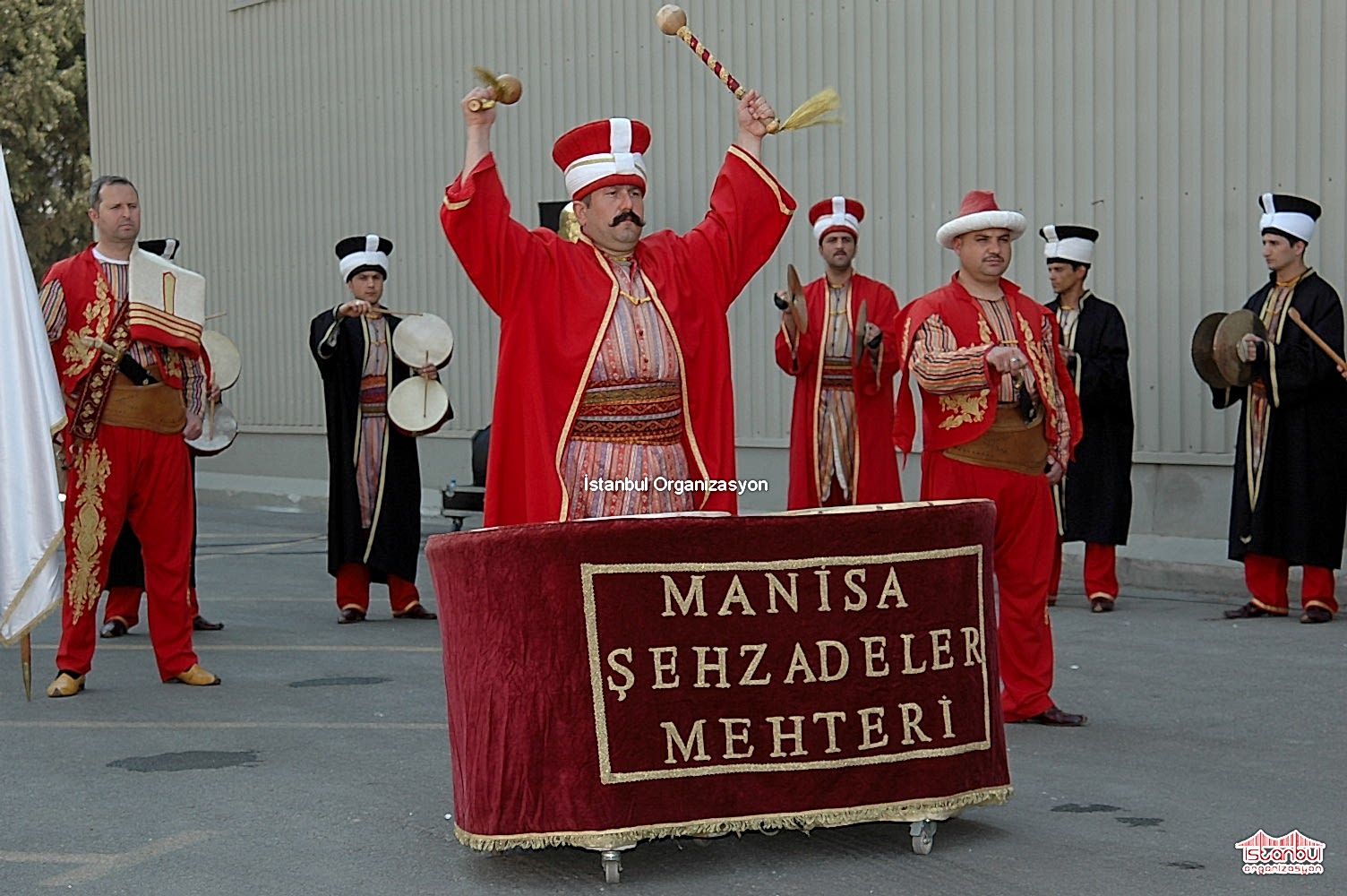 Organizasyonlarda gösteri yapan mehteran takımımız organizasyon konseptine ve sizin tercihinize göre, 9 kişilik, 16 kişilik, 20 kişilik ya da 100 kişilik olabilir. Dönemin Yeniçeri mehteran kostümünü giyerler ve çeşitli enstrümanlar çalarlar.