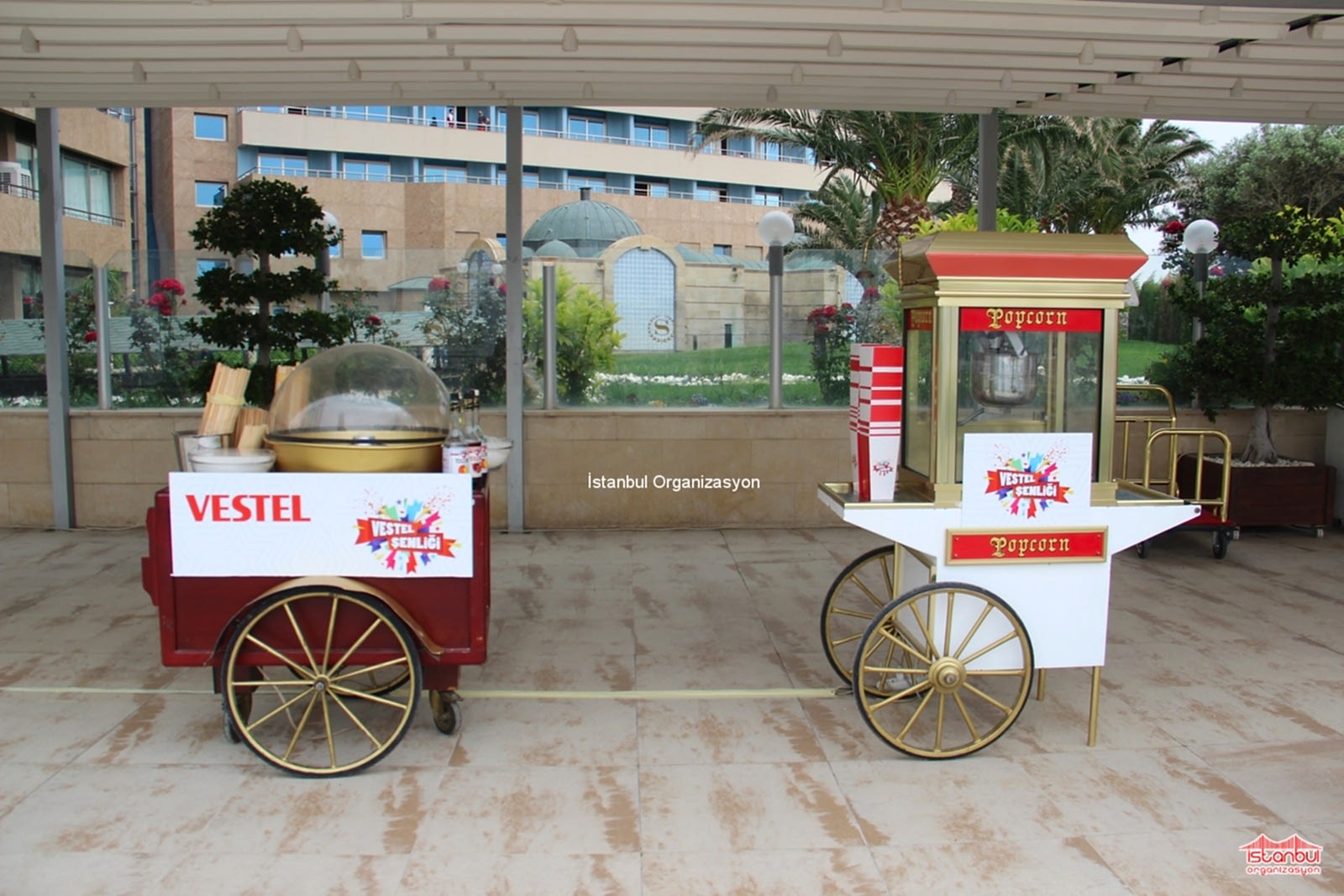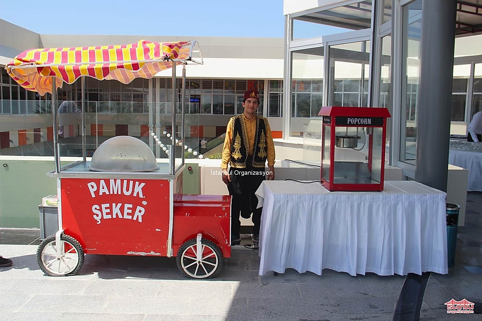 AVM etkinlikleri ve açılış organizasyonu gibi organizasyonlarınızda da davetlilerinize patlamış mısır, pamuk şeker gibi sokak satıcıları ve animasyonlu yiyecekler hizmeti verebilirsiniz.