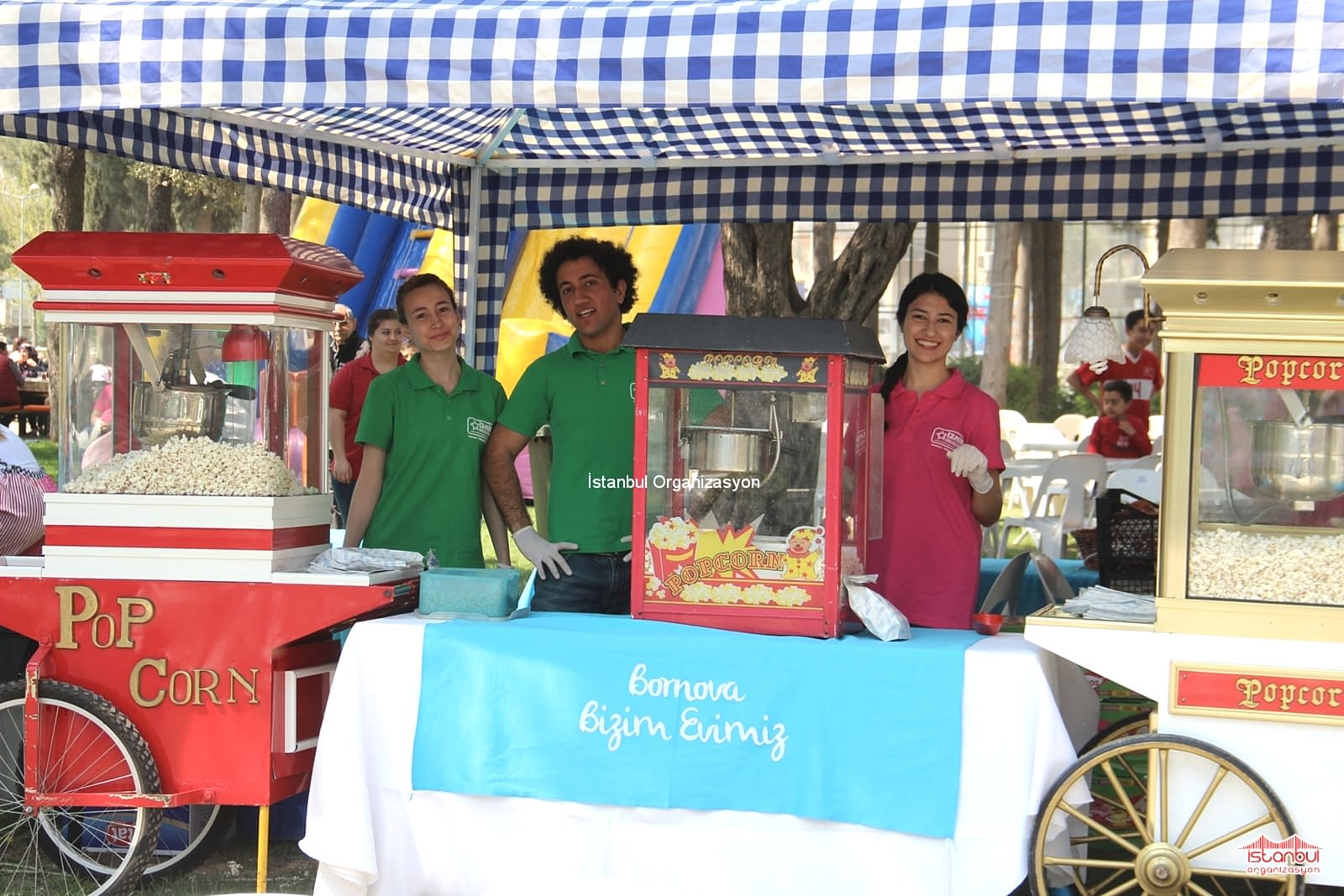 İstanbul Organizasyon firması olarak, geçmişi yad etmek ve eğlence organizasyonlarına farklı bir etkinlik getirmek için, patlamış mısırcı popcorn hizmeti veriyoruz. Yeni nesil son teknoloji patlamış mısır makinelerimizi, organizasyon konseptinize uygun bir şekilde tasarlayarak etkinliklerinize sunuyoruz. Patlamış mısır makinesi ve yöresel kostüm giyen nostaljik satıcımızla birlikte animasyonlu yiyecek hizmeti veriyoruz.