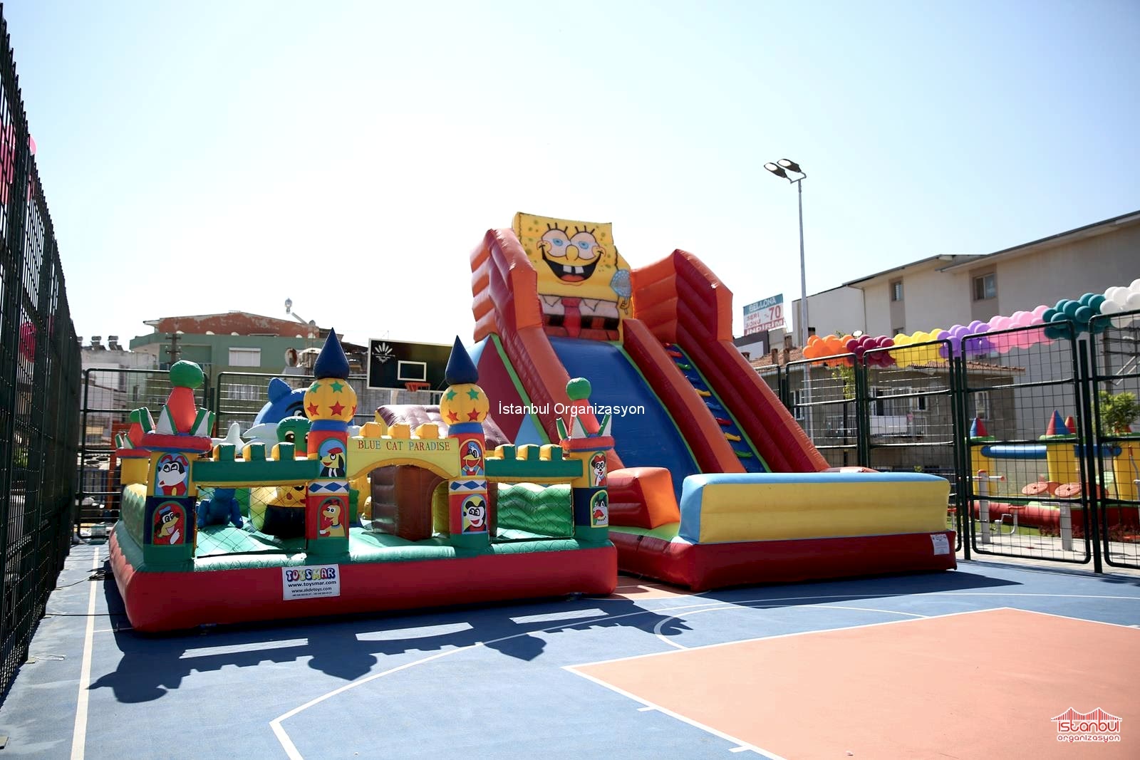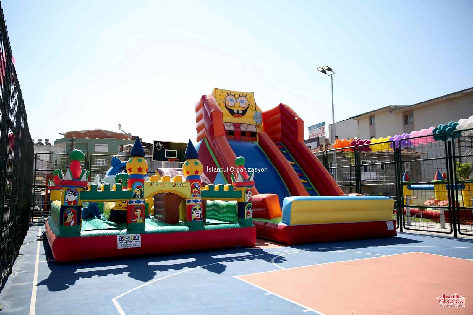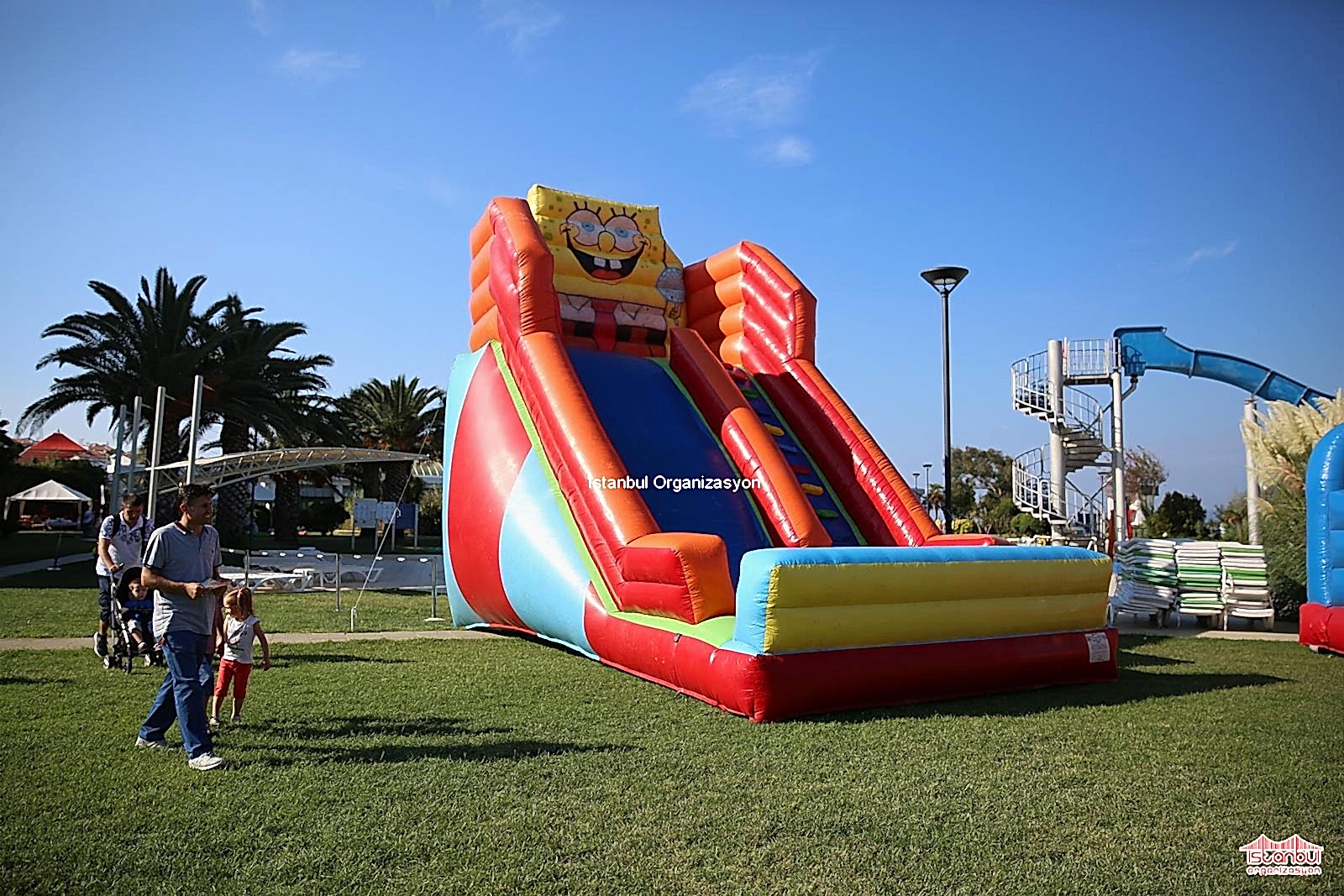 Sünger Bob Kaydırak; 5 ile 15 yaş grubunun rahatlıkla oyun oynayabileceği oyun parkurlarından birisi olan Sünger Bob şişme oyun parkuru festival ve şenlik organizasyonu, piknik organizasyonu ve aile günü etkinlikleri, doğum günü organizasyonu gibi organizasyonlarda İstanbul Organizasyon şirketimizden sık sık talep edilmektedir. Outdoor aktivitelerinizde tercih edebileceğiniz şişme çocuk oyuncakları arasında bulunan Sünger Bob kaydırak %100 pvc maddeden üretilmiştir. Oyun parkurunun tamamı şişme olduğundan herhangi bir güvenlik problemi yaşanmamaktadır.