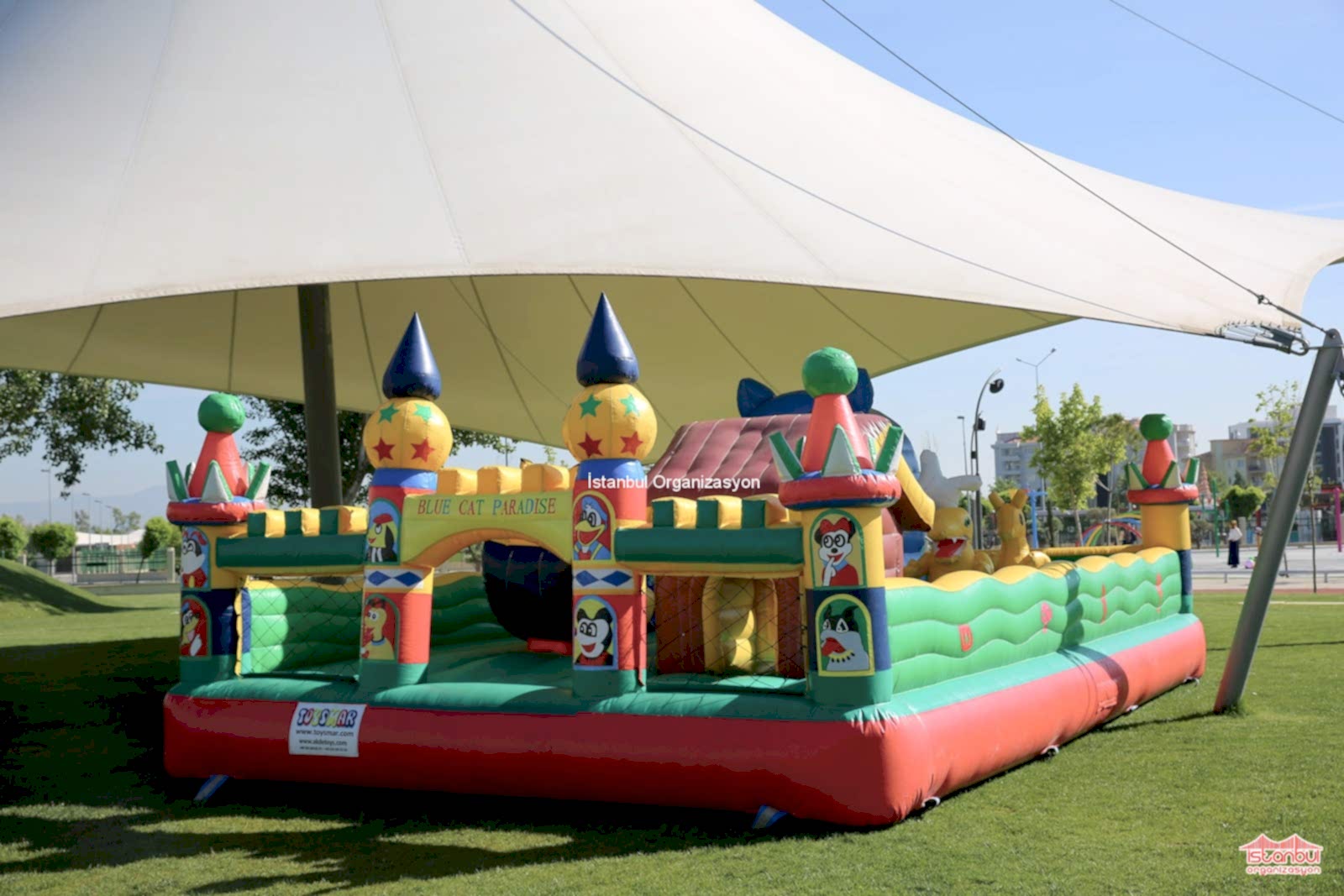 Şişme çocuk oyun parkurları kiralama hizmetine oyuncakların nakliyesi, kurulumu ve 1 adet sivil gözetmen dahildir. Yukarıda belirtilen oyun parkurlarının yanı sıra, akvaryum zıpzıp, renkli kaydırak, ufak tırmanma dağı, papyonlu zıpzıp şişme oyuncakları da İstanbul Organizasyon şirketimizden talep edebilirsiniz.